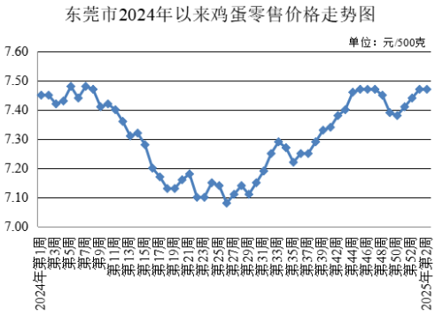 第2周,雞蛋農(nóng)貿(mào)市場零售均價為每500克7.47元,與上周持平。