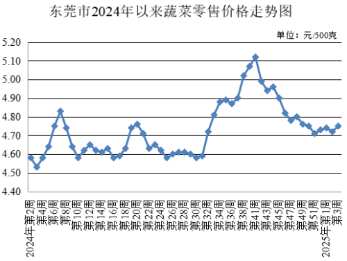 第3周,監測的30種蔬菜農貿市場零售均價為每500克4.75元,較上周上升0.64%。其中,葉菜類農貿市場零售均價為每500克4.85元,較上周上升0.21%;非葉菜類農貿市場零售均價為每500克4.67元,較上周上升0.86%。