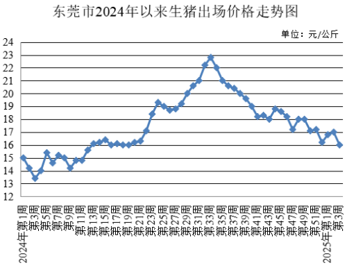第3周,生豬出場價格為每公斤16元,較上周下降5.88%。總肉批發均價為每500克12.65元,較上周下降4.89%。