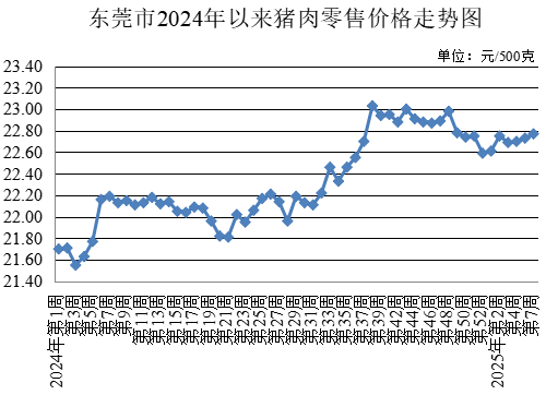第7周,牛肉農貿市場零售均價為每500克46.68元,與上周持平。牛腩農貿市場零售均價為每500克43.14元,較上周上升0.21%。雞肉農貿市場零售均價為每500克17.09元,較上周下降0.52%。